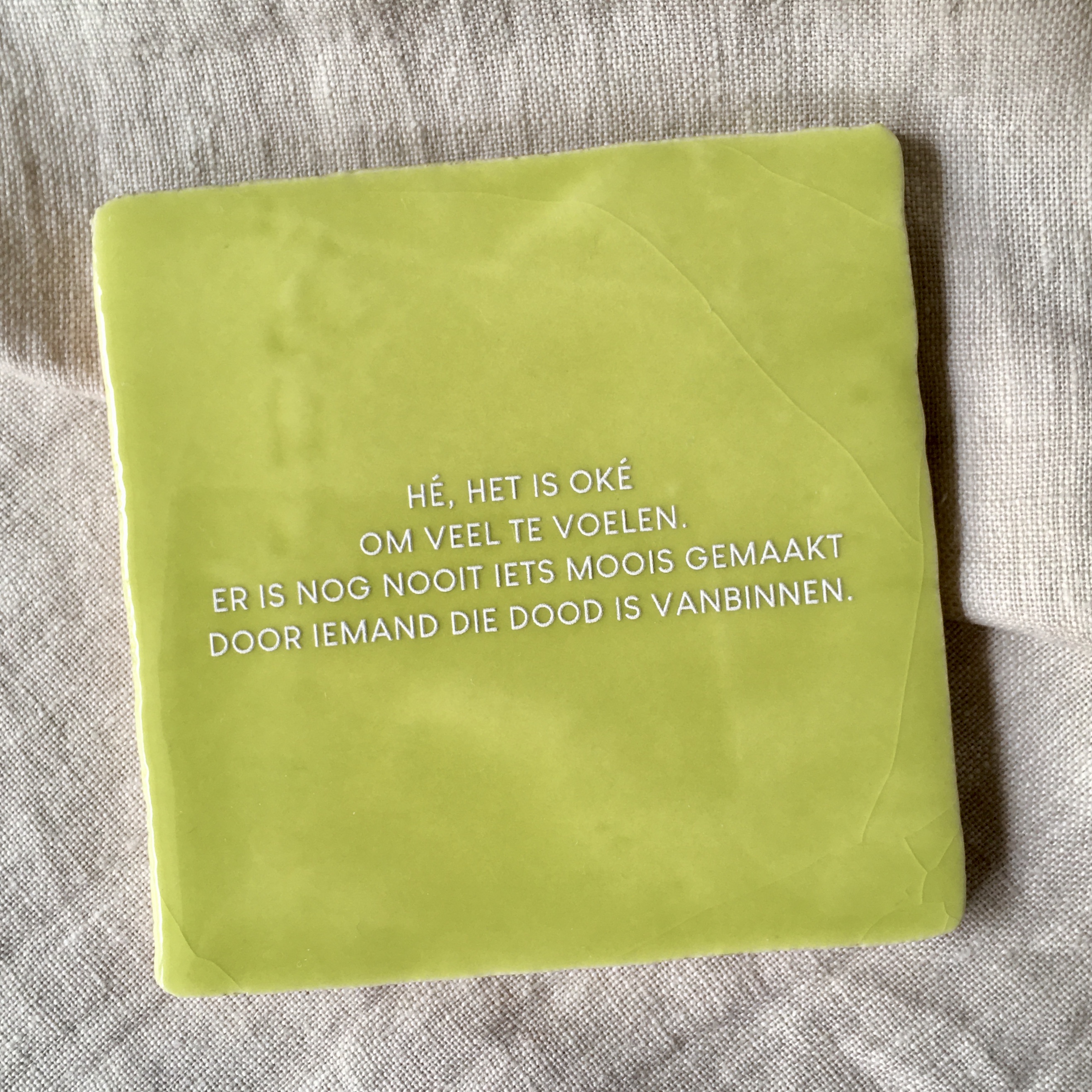 Je kan kiezen uit maar liefst 17 (!) verschillende teksten van mij, van grappig tot liefdevol. De tegels komen in 5 verschillende mooie kleuren. De kleur van de letters kan je helemaal zelf personaliseren.