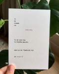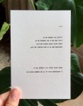 POSTKAARTEN Dit zijn al mijn postkaarten. Ze worden gedrukt in Gent, op dik biotop papier. Je kan ze kopen in mijn woordenwinkel. 1 2 3 4 5 6 7 8 9 10 11 12 13 voorkant 13 achterkant 14 voorkant 14 achterkant 15 16 17 18 19 20 21 22 23 24 25 26 27 28 29 30 31 32 33 34 35 36 37 38 39 40 41 42 43 44 45 46 47 48 49 50 51 52 53 54 55 56 57 58 59 60 61 62 63 64 65 66 67 68 69 70 71 72 73 74 75 76 77 78 Dit delen: Klik om te delen op X (Opent in een nieuw venster) X Klik om te delen op Facebook (Opent in een nieuw venster) Facebook Klik om op Tumblr te delen (Opent in een nieuw venster) Tumblr Klik om op Pinterest te delen (Opent in een nieuw venster) Pinterest Vind-ik-leuk Aan het laden...